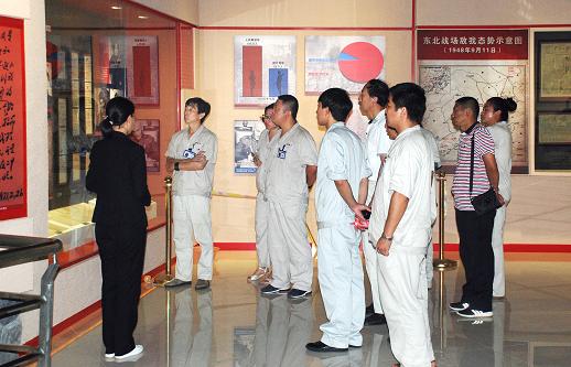 在黨總支書記陳冰的帶領(lǐng)下,公司所有黨員同志在革命烈士紀念碑前向革命烈士獻上花環(huán),集體默哀回顧歷史,以表示對為了革命事業(yè)浴血奮戰(zhàn)、英勇犧牲的所有烈士哀悼與懷念。隨后,全體黨員來到紀念館展館參觀,講解員按照迎接決戰(zhàn)、廘戰(zhàn)塔山、策應(yīng)決戰(zhàn)、人民支援、彪炳千秋的順序向參觀黨員全面講解了塔山阻擊戰(zhàn)的具體戰(zhàn)役情況及戰(zhàn)略形勢,剖析了塔山阻擊戰(zhàn)的重要戰(zhàn)略意義,詳細介紹了戰(zhàn)爭過程中張永昌等黨員同志為了革命事業(yè)敢于犧牲的英勇事跡,展館中陳列了各種作戰(zhàn)時的武器、獎?wù)?、決心書、人民支援前線用具等,一幅幅塔山阻擊戰(zhàn)的圖片和一件件烈士生前的遺物完整而又真實的還原歷史,譜寫了一首壯烈的革命贊歌。正是塔山英雄們的浴血奮戰(zhàn),阻止了東進兵團的國民黨之敵,為遼沈戰(zhàn)役的全面勝利爭取了寶貴時間。參觀的黨員對烈士的革命精神表示由衷的敬意,感受烈士們不朽的精神,并且深刻體悟到黨員干部必須堅定理想信念,切實把開展“兩學一做”學習教育作為一項重大的政治任務(wù),作為加強對黨員干部教育、建設(shè)高素質(zhì)黨群隊伍的難得契機。